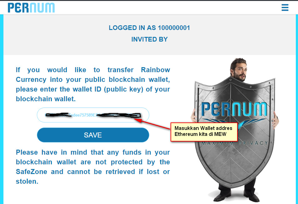 Berikut langkah mudah untuk menghubungkan Pernum Wallet ke Publik Wallet di MyEtherWallet :